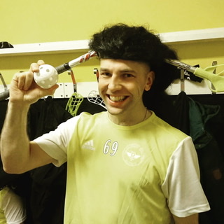 Det var en strålande morgon och ett härligt gäng som åkte från ett Dorotea som firade Doroteadagen i solskenet. Vi skulle möte IBF Dalen. På vägen dit tänkte jag -Vad gör jag egentligen? Man börjar ju vara för gammal för sånt här och i detta finväder, kan det vara nått? Väl framme värmde vi upp och drog taktiken. Det skulle bli en tuff match det visste vi. I den senaste matchen mot Dalen vann de med 17-1. Vi gick ut med en bra känsla. Zeth lyckades göra mål efter bara 26 sekunder. Första perioden slutade med 2-1 och vi kände att vi var med på riktigt i matchen. I andra perioden gick Dalen ifrån lite till 5-1 när det var 5 minuter kvar av 2:a perioden. Mathias lyckades fiska upp en boll till höger om motståndarmålet och gick runt målet och tryckte in bollen mot vänster stolpe. Returen gick rakt ut från målet och jag smackade in bollen i målet. Glädjen var oundviklig! Jag skrek så att hela hallen bågnade. Första seriemålet i karriären var ett faktum. Domaren kom fram och varnade att Umeåborna inte var van vid sånt oljud. Jag svarade att det var första målet i karriären. Då gick han och hämtade matchbollen och grattade. Vi spelade bra och kände fortfarande att vi kunde vinna matchen. I 3:e perioden gjorde Dalen till slut 8-2 som blev slutresultatet. Vilken dag och vilket härligt gäng! Vi firade nästan som vi hade vunnit efter matchen. Tack till alla sköna lirare!!! Ge aldrig upp!